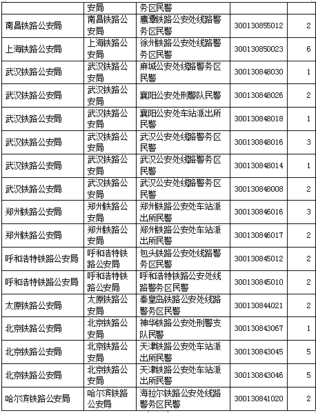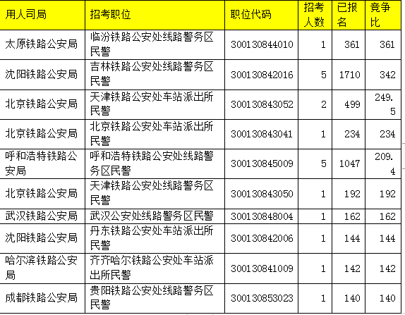 2020國考鐵路公安系統競爭最激烈的十大崗位(截至21日17:00)