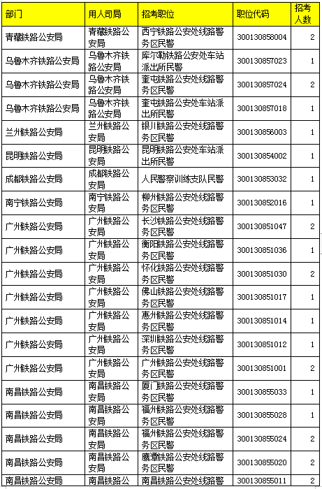 2020國考鐵路公安系統無人報考崗位(截至21日17:00)