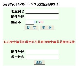 點擊進入:2014年全國碩士研究生招生考試初試成績查詢頁面