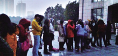 文法學院中文系大三學生王蓓,就是摸黑排隊者其中之一。本以為凌晨5點起床能占得“先機”,但她遠遠低估了形勢!暗任亿s到圖書館,那里早排起了長龍!蓖踺碚f,有同學凌晨4點就到圖書館排隊。該校圖書館上午8點30分開館時,排隊的人數已有540余人,而圖書館自習室總共只有518個座位。為防止插隊,校方還出動人員維持秩序,同時為有效利用座位,學校還規定同學坐好位置后不能隨意走動,禁止一人多占。