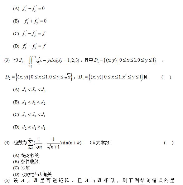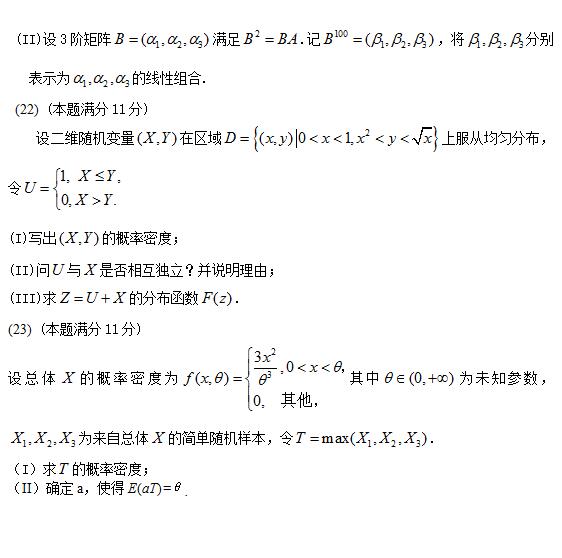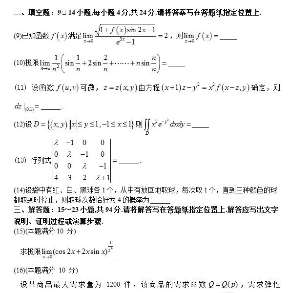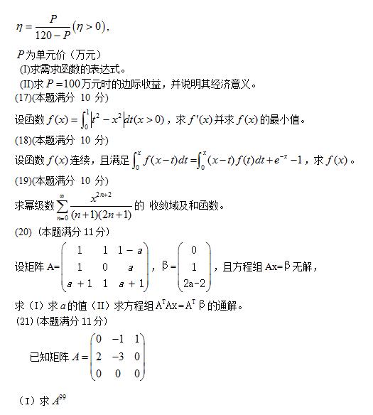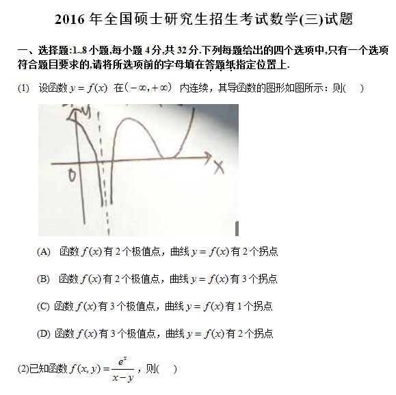 2016年全國碩士研究生招生考試數學(三)試題--教育--人民網