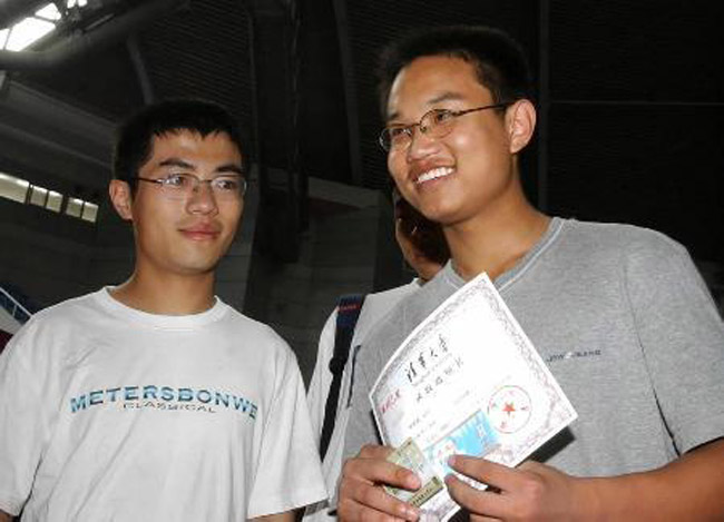 2003年在距高考第一場考試開始只有幾個小時的時候,張亞超面對宿舍外行竊的小偷勇敢地沖了上去。在搏斗中,他不幸被小偷用酒瓶砸中頭部,血流滿面。但是為了圓自己的清華夢,他忍著右手右臂及腦震蕩的傷痛,完成了全部科目的考試。遺憾的是他的總分未達到報考的清華大學分數線。清華在經過認真調查、嚴格考試后,利用自主招生政策破格錄取了他。圖為2003年張亞超到清華報到。
