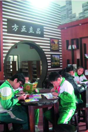 如今,書吧成了學生們最喜歡去的地方。一到下課,書吧里便坐滿了學生,他們三三兩兩,閱讀各自喜愛的書籍。除了上課時間開放,放學后,等家長來接的那段時間,學校也會引導等待的學生到書吧閱讀,“在校外等天冷,而且不安全,學生在書吧讀書,既安全又舒服!