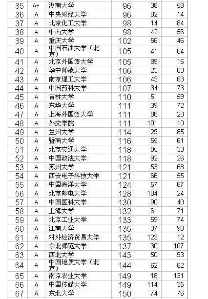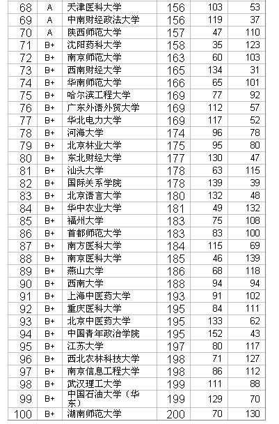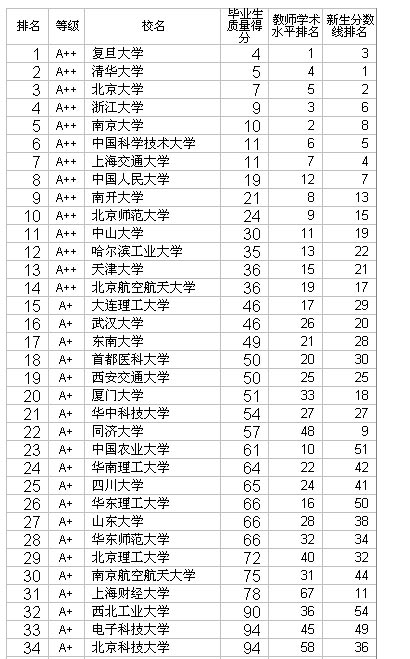 3、將每所大學的教師平均學術水平名次與新生錄取分數線名次相加,升序排列后給出名次,得到在同一標準下,全國704所大學的本科畢業生質量排名。