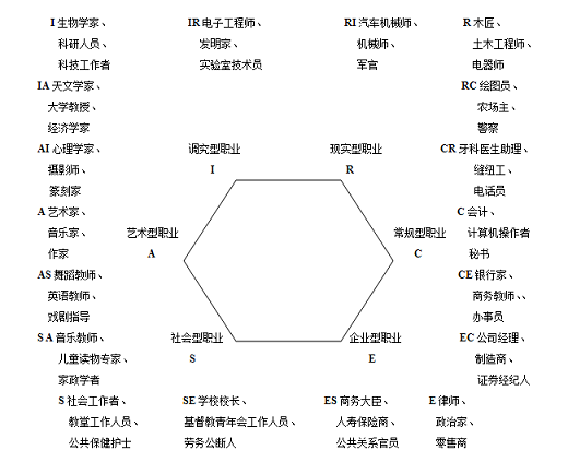 下面我們主要地介紹一下關于職業傾向測試的霍蘭德教授的職業人格的六角型思想,及對不同職業的選擇。