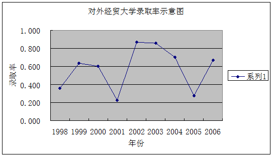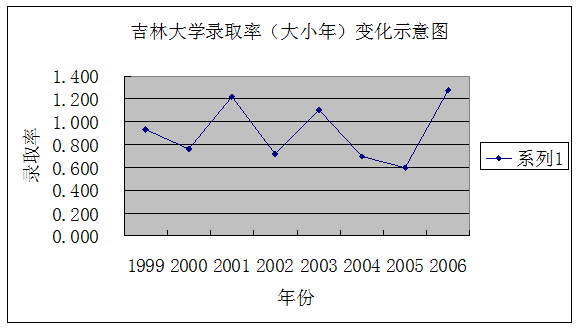 在以上圖表中,我們可以一目了然的看出,錄取率低的年份為該校的大年,錄取率高的年份為該校的小年。并能大體預測出當年的大小年變化趨勢。