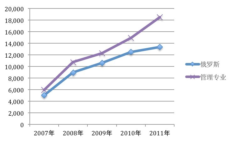 隨著中國經濟對世界經濟發展影響持續增大,越來越多的國家與中國建立了良好的經貿合作關系,與中國有商貿來往的企業也越來越多,這些國家的企業與逐步認識到跨文化的差異,包括歷史文化差異和語言障礙、管理情境與管理方式、市場特點等方面,在一定程度上阻礙了這些企業在我國的發展,因此會中國話、了解中國文化、具有國際視野和中國洞察力的管理人才在這些包括俄羅斯在內的外國企業越來越受到歡迎。近年來,來自俄羅斯和世界其他國家和地區的中國MBA留學生穩步增長,需求正在不斷上升。