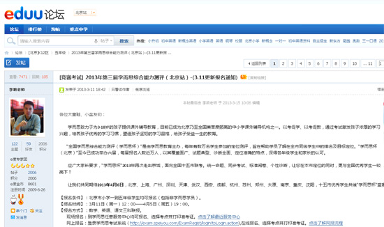 為什么市面上沒有公開的競賽公告,而報名人數卻數量驚人呢?家長王女士向記者透露:“這主要是報班后,大家都會定期去看跟培訓班有關的網上論壇,通知和相關資料上面都有!庇浾叽蜷_了王女士告知的某論壇,查看后,記者發現各種杯賽的時間,報名地點等一應俱全,還有新的競賽也緊鑼密鼓的報名籌備中。