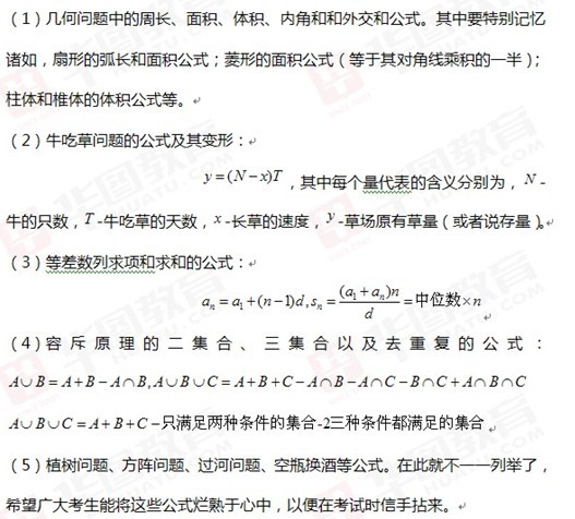 在數資當中有很多題目是直接套用公式的,在考試時考生能在幾秒鐘內迅速回憶起相應的公式是做題的關鍵,否則只能與這類試題失之交臂。比如在聯考中?嫉膸最惞接校