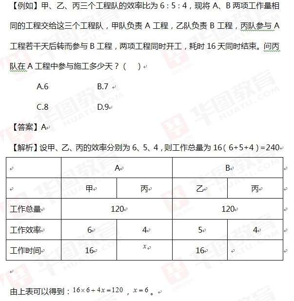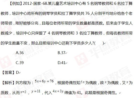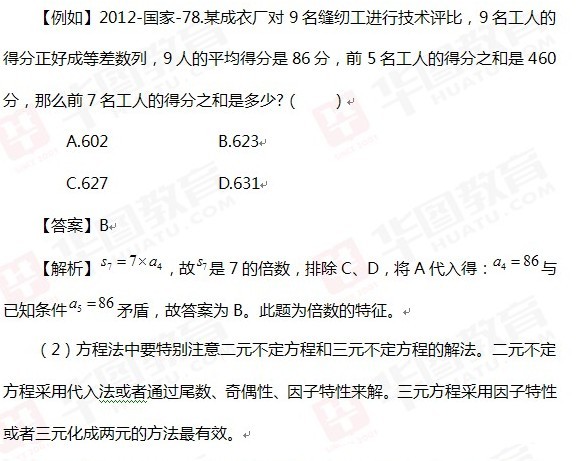 (1)代入排除法和數字特性法結合在一起使用,往往能起到意想不到的效果。題目當中如果出現分數、百分數、比例、倍數,甚至是小數的時候,先考慮結果是不是某個整數的倍數,這樣往往能排除掉部分答案,剩下的選項可以選擇代入去驗證。即使沒有時間去驗證的話,也可以提高答案的正確率。