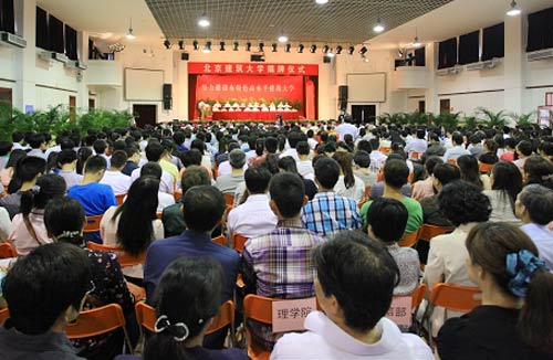 北京建筑大學校黨委書記錢軍在致辭中說:自1936年建校以來的 77年間,學校五易校址,數易校名,先后為首都及國家城鄉建設培養了5萬余名畢業生,造就了一批又一批的優秀人才。他說,我們要積極響應與追尋“中國夢”的偉大號召,探尋新的“北建大夢”:用二十多年的時間,在建校一百周年時,努力把北京建筑大學建設成為國內一流、國際知名的有特色、高水平建筑大學。