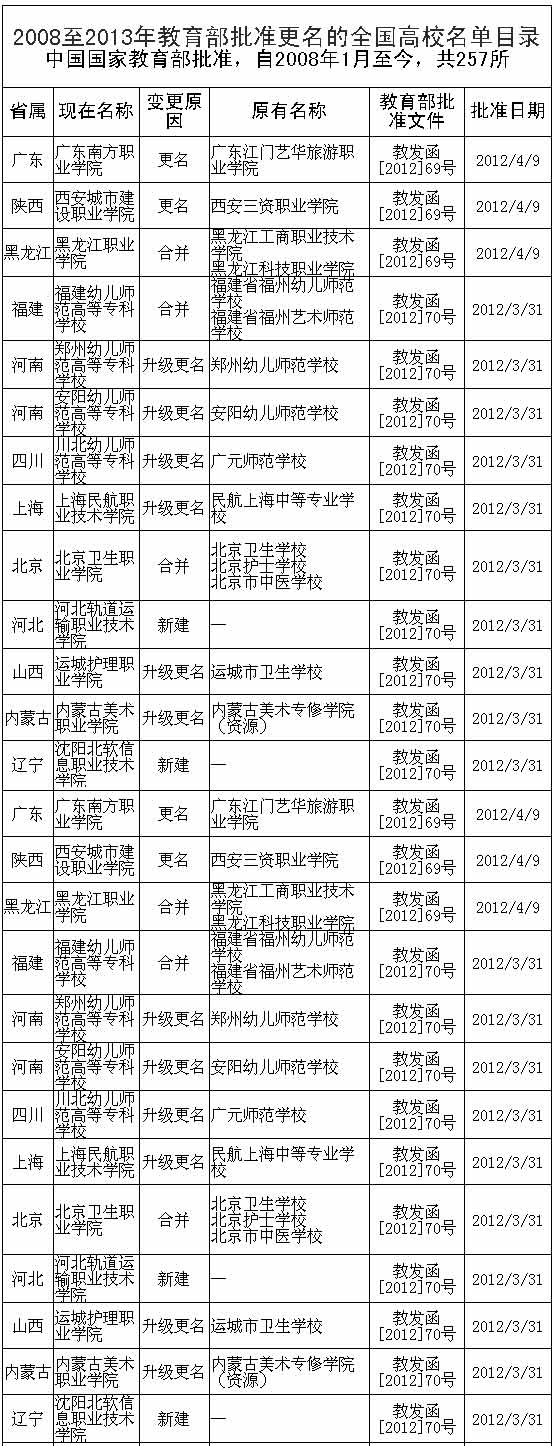 2013年高考后,最新更名的51所高校將以新身份招生。有網友評論說:“兩三年一輪的部分高校更名潮,其實都是在各種地理區位、人口紅利、歷史背景、轉型求發展、生源質與量、科研項目報批、經費籌措等各種因素推動下形成的。然而,校名一改,今后高校自身真正的長足發展、人才培養的最終成就等教育成果,有待深究和拭目以待!