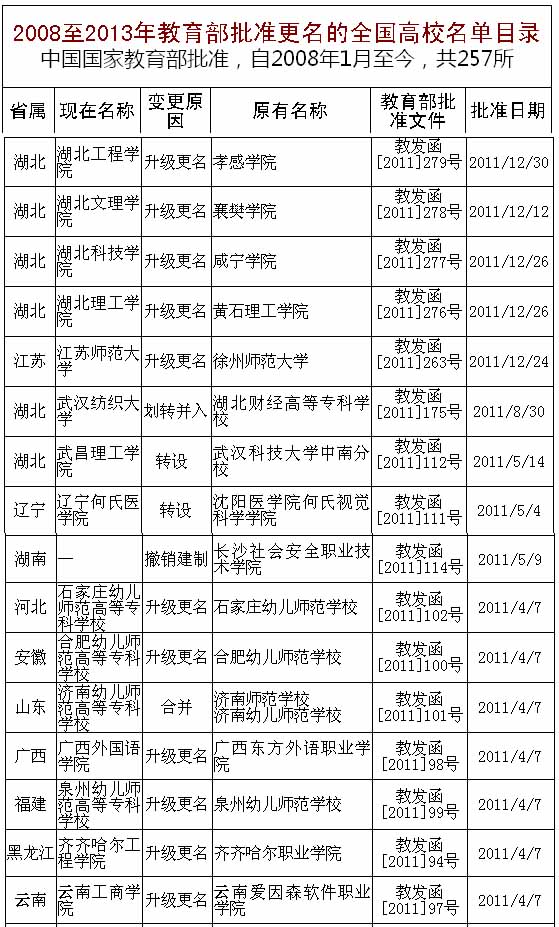 地方名上升為省級或區域名。雞西大學(?疲┥壐麨楹邶埥I學院、漳州師范學院改名為閩南師范大學、邕江大學變成南寧學院、黃石理工學院升為湖北理工學院、徐州師范大學更名為江蘇師范大學、茂名學院改為廣東石油化工學院、大慶石油學院改名為東北石油大學等等,五年來,共有30余所大學在更改校名時提升并擴大了“勢力范圍”。