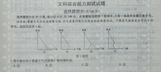 文科綜合 浙江 廣東 安徽卷 湖南清晰版 江西 重慶 更多>>