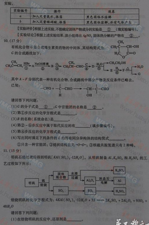 2013高考四川理科綜合試題及答案(清晰版)【10】