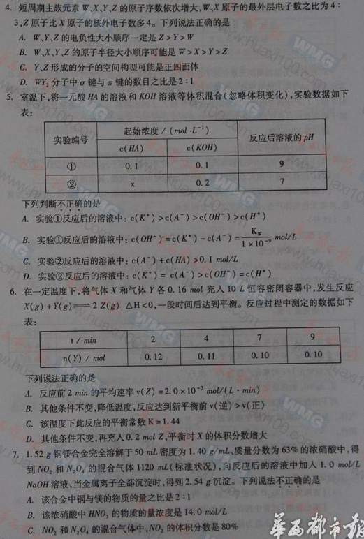 2013高考四川理科綜合試題及答案(清晰版)【8】