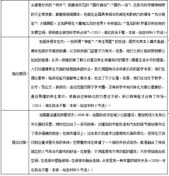 在對材料進行整體把握的同時,明確與題目相匹配的材料,具體細化為每一段、每一句,為要點的提煉提供依據。如2011湖北政法干警申論第一題,“根據材料1~3,請你分析張悟本事件折射出哪些現實問題!笔紫纫獙⒛繕随i定到“材料1~3”,找到“張悟本事件”的相關內容,對其有充分理解和把握,接下來再有針對性地結合“材料1~3”中闡釋的事實,分析“張悟本事件”折射出的現實問題。