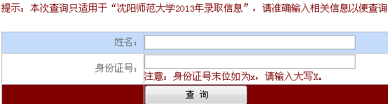沈陽師范大學2013年高考錄取結果查詢系統