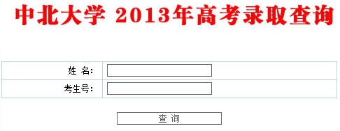 中北大學2013年高考錄取結果查詢系統