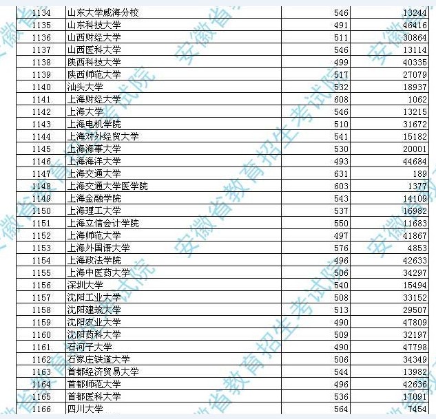 安徽省2013年第一批本科院校投檔分數及名次(理工)【5】