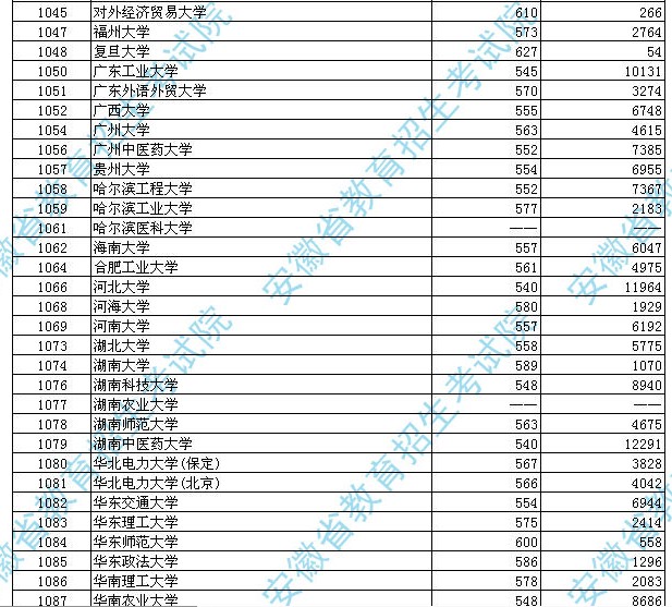 安徽省2013年第一批本科院校投檔分數及名次(文史)【2】