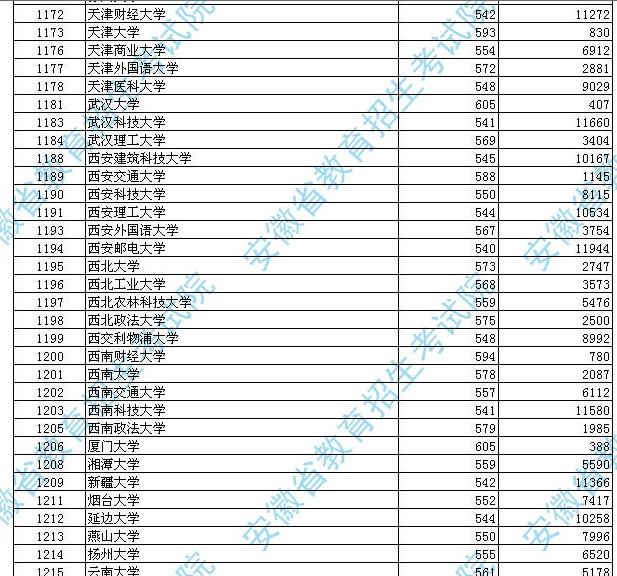 安徽省2013年第一批本科院校投檔分數及名次(文史)【5】
