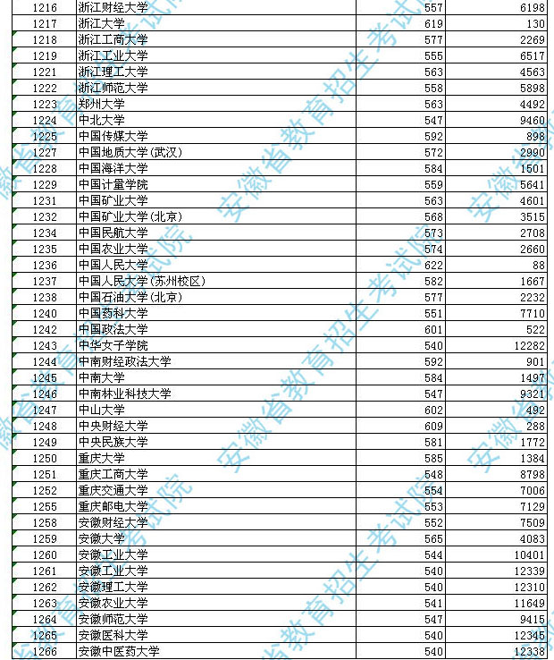 安徽省2013年第一批本科院校投檔分數及名次(文史)【6】