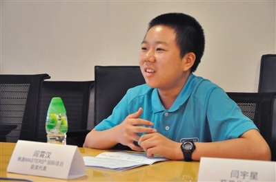 13歲的閻霄漢是北京八中少兒班學生,今年被保送到北京大學數學科學院。作為北京唯一一個中學生代表,今年5月12日至17日赴美參加了博通MASTERS國際中學生科技項目。昨日記者了解到,今年北京八中少兒班一共24名學生參加高考,其中5名學生被北大錄取,2名學生被清華錄取。