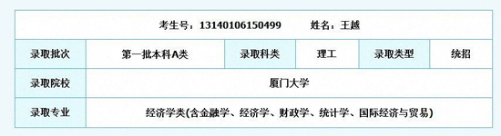 被廈門大學經濟學類專業錄取