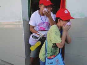 35名小報童、12名消防戰士面對面交流。岳陽市消防隊派人講課,其間不斷有小報童提問。這個小團體在課后體驗了火災現場緊急逃生。