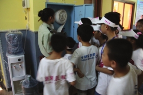 小報童們參觀了消防車、試著穿消防服、試著疏散到逃生帳篷。一些小報童膽子小,站在車上不愿嘗試,最后在消防員的指導下,終于學會了如何操作。