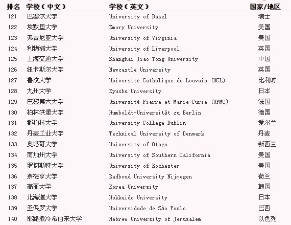 2012-2013年QS世界大學排名—TOP200排名【4】--教育--人民網