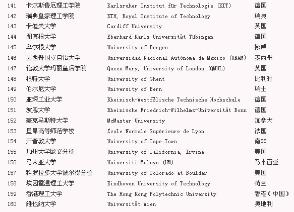 2012-2013年QS世界大學排名—TOP200排名【4】