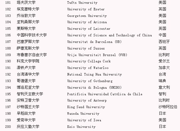2012-2013年QS世界大學排名—TOP200排名【5】