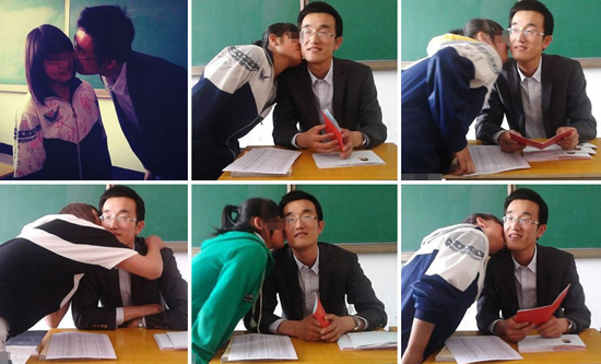 男子面露微笑,正接受學生親吻。圖片來源于網絡。