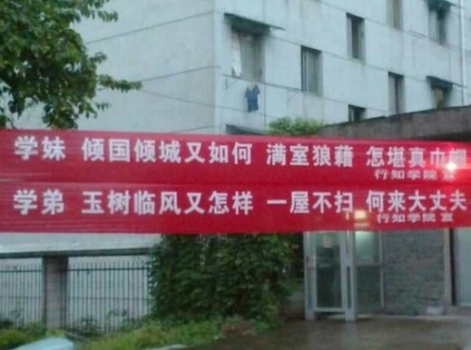 學妹,傾國傾城又如何,滿室狼籍,怎堪真巾幗;學弟,玉樹臨風又怎樣,一屋不掃,何來大丈夫。