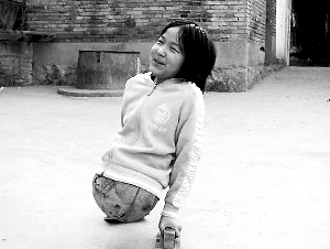 2000年10月,家住云南省陸良縣馬街鎮的錢紅艷遭遇車禍,年僅4歲的她從骨盆以下被完全截肢,失去雙腿。隨后,她將爺爺剪開的半個舊籃球套在身下,借助胳膊的力量在地上爬行,因此,她被大家心疼地稱為“籃球女孩”。2005年5月,中國康復研究中心北京博愛醫院為她設計裝配了雙側髖關節離斷假肢。如今,8年過去了,舊的假肢接受腔已經很難裝進錢紅艷現在的身軀,短小的雙腿假肢也不適應她這個年齡應有的身材了。