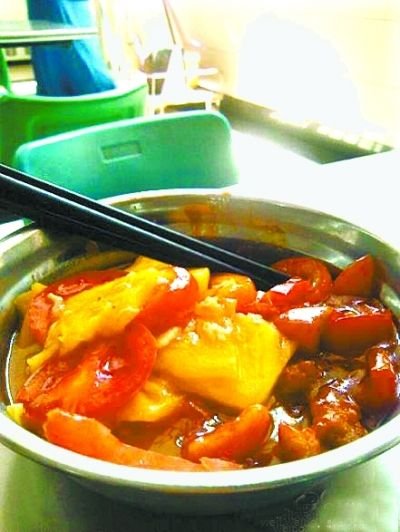 菠蘿炒番茄:據說是因為非典時期不能吃雞,不能吃雞蛋而開發的