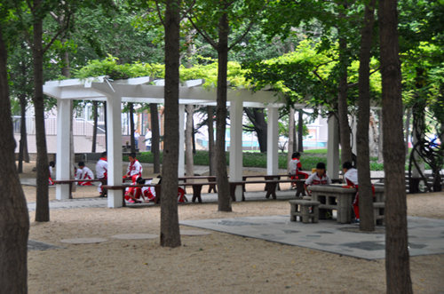 于會祥校長說:“客觀地講,目前在我們學校的管理中,整齊劃一的東西太多,條條框框太多,統一的課程、統一的廣播操、統一的午間甚至中午飯后統一不讓學生出教室、統一的發型。即使有個花園,也是用冬青黃楊圍起來,學生進不去。也就是說,我們更多地是從管理者的角度、從成人的角度去設計校園、制定制度,對學生的年齡特點、成長需求、校園育人元素這些最重要的因素反而考慮的少了,從育英學校近兩年的實踐看,當我們關注這些重要的因素時,確實對我們既有的管理習慣、管理行為等提出了挑戰,但是,管理就是服務,再困難再挑戰也要努力去做!