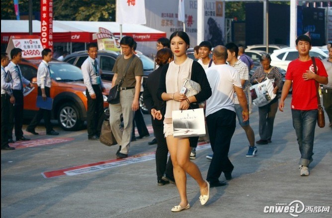 車展結束后,李靜凝換上便裝、平底鞋離開展館。