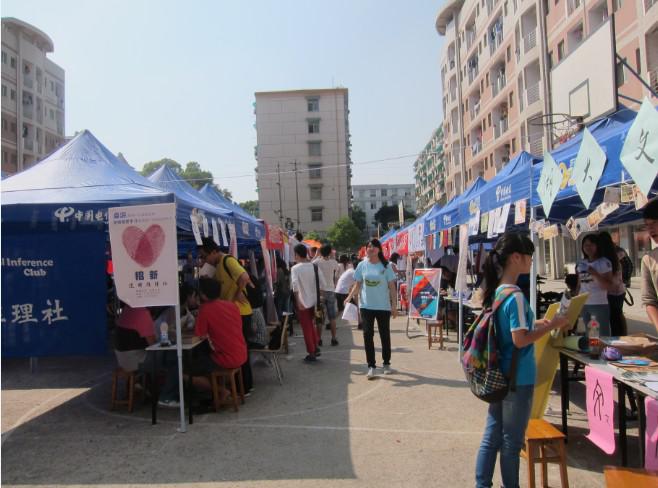 10月12日,天馬學生公寓二區籃球場熱鬧非凡。一年一度的“百團大戰”強力來襲。涵蓋公益、體育、文化、文藝、社科、學術等一百多個社團正進行著緊鑼密鼓的“搶人運動”。招新活動將持續到10月13日。即使是中午的炎炎烈日,也絲毫沒有影響招新團隊和新生們的熱情,各個社團的宣傳棚下,都坐著前來咨詢、報名的新生和耐心回答的招新負責人。
