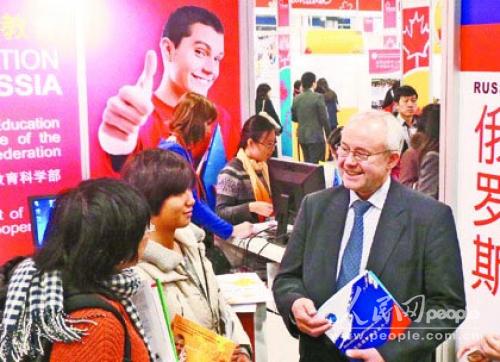 為期兩天的2013中國國際教育展在北京舉行。美國、英國、法國、澳大利亞、加拿大、西班牙、新西蘭、韓國、新加坡等42個國家和地區的逾600所學校參展,面對面解答學生和家長們關心的留學動態、就業前景、學科專業、簽證信息、獎學金政策等。