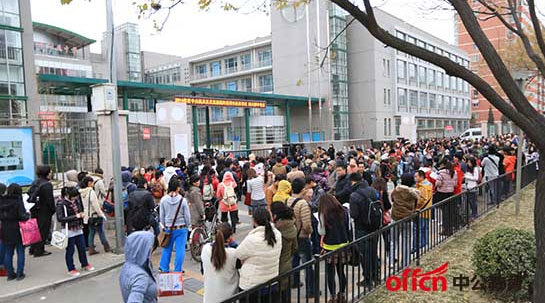 11月24日上午9時,2014年度中央國家機關錄用公共科目筆試鳴鑼開考,本次考試涵蓋了全國31個。▍^、市),報名審核通過152萬人將參與本次考試,有150余萬考生參與本次“考碗”,規模之大、人數之多、競爭激烈度創歷史新高。清晨八點的北京,天空中陰霧迷蒙,氣溫微寒,此刻,考生們已經攜帶所有考具早早來到考場外等候,更值得關注的是,幾乎所有人都在翻看手里的備考資料,不讓一分一秒匆匆虛度。