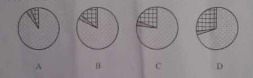 134.下列哪一張圖能反映2012年清潔能源機組并網容量中水電、核電和新能源發電的構成?