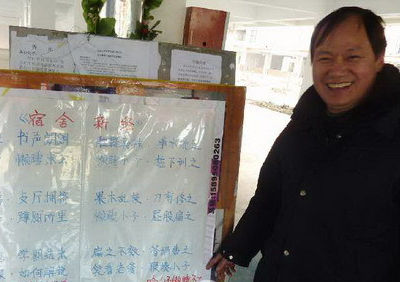 “北風蕭蕭兮宿舍寒,小子瑟瑟兮把窗關,久關不上兮冷淚滴?筛陕锊粊韴笮?說你傻兮兮還不干!”這首亦莊亦諧的打油詩出自常州大學10號宿舍樓管理員霍中安之手。57歲的霍中安每天巡房、查修、檢查衛生,照顧著一群剛上大一的小伙子。他的通知告示全部用打油詩詞的形式寫成,兩三天一更新,深得學生好評,被稱為“最有才宿管”。