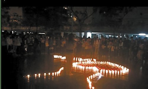據網友報料,4月3日11時10分左右,一名女生來到華南農業大學的教四廣場,用蠟燭擺了一個巨型的心形并點燃,隨后拿著一個大喇叭站在人群里高聲向某男生表白“×××,我愛你!”人群中響起了持久的鼓掌聲。被該女生暗戀的男生沒有露面,該女生再次拿起大喇叭表白,圍觀的學生不停地高呼:“在一起!在一起!”男主角仍未見現身,該女生有些失望,打算回去,并大喊:“我會等你的!”