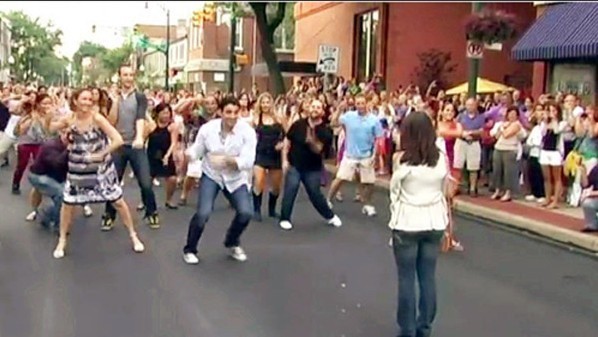 美一男子為向女友求婚約300人在街道群舞:美國男子蘭西尼亞與女友亞歷克斯德羅伊亞到達賓夕法尼亞州塞威克利小鎮當地一家餐館外時,突然路上的陌生人開始跳舞,蘭西尼亞也加入其中。德羅伊亞稱,她看到有近300人參加了跳舞表演。隨后,蘭西尼亞突然單膝跪地,向相戀6年的女友德洛羅伊亞求婚,并得到這些舞者的支持。德羅伊亞稱:“場面令人驚訝,盡管我等待這一時刻已經很久,但它值得等待!