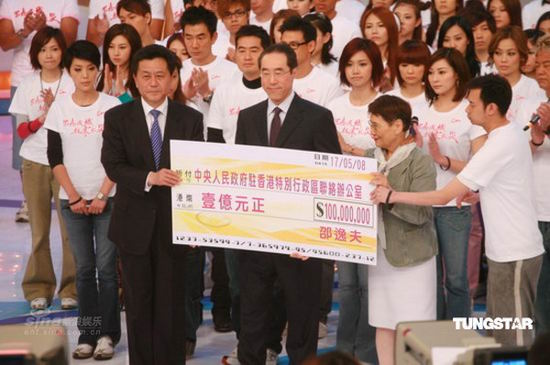 四川汶川地震,邵逸夫爵士夫婦捐款1億港幣,四川雅安地震又捐款8000萬人民幣。