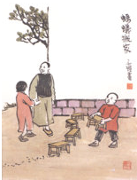 不過他又覺得好奇,想看看滾下山崖的瓦缸究竟怎么樣了。小販攀援這雜草灌木往下沒有幾步,就看見瓦缸恰好被卡在兩棵小樹之間,完整無缺。小販一聲長嘆,拿起石頭又將這只瓦缸也砸得粉碎,挑著空竹筐回去了。
