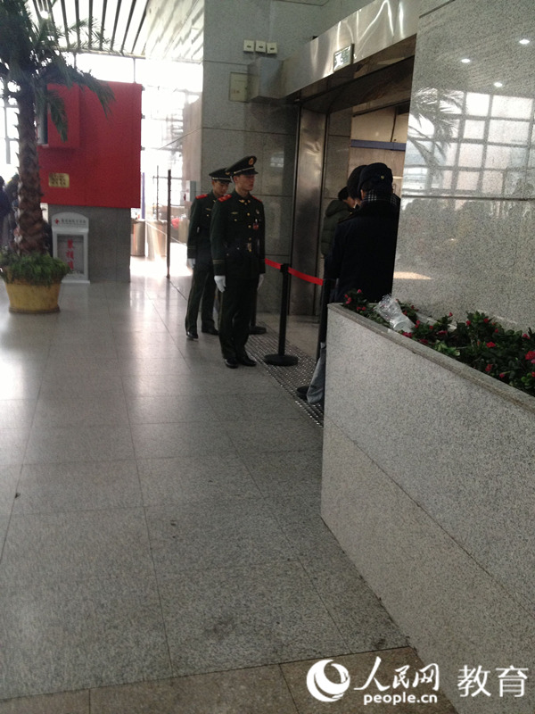 車站口站崗的解放軍,他們肯定也想回家過年,但為了確保乘客安全乘車,他們毅然堅守崗位站崗放哨。(王文博攝)